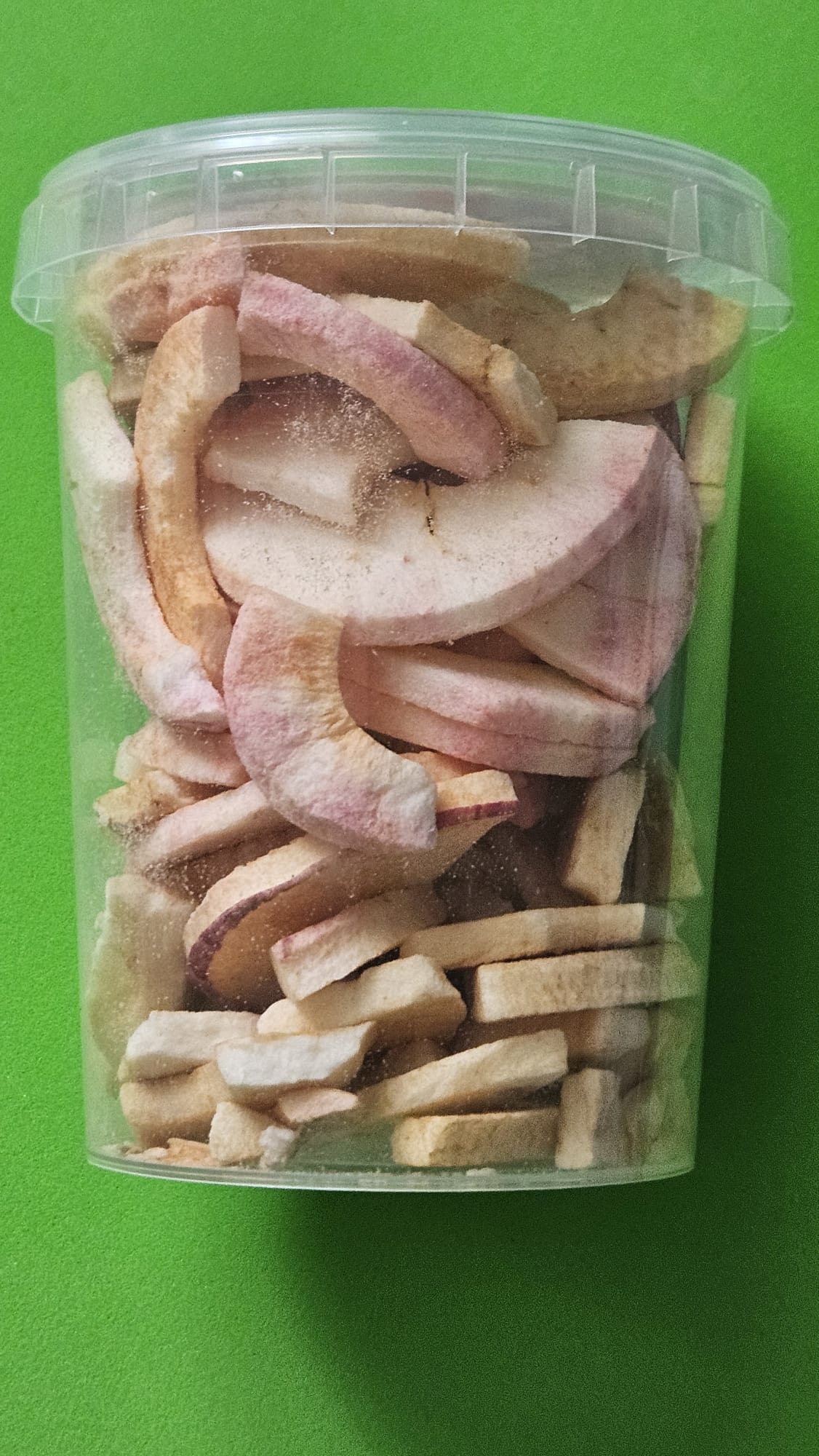 Ābolus nomazgā, sagriež un ātri sasaldē, tad vakuumā iztvaicē mitrumu aukstumā – tā saglabājas garša, krāsa un vērtīgās vielas. Rezultātā rodas kraukšķīga, dabīga uzkoda bez cukura un piedevām.